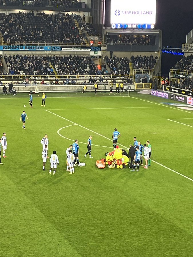 Για μια στιγμή όλοι πάγωσαν στην αναμέτρηση της Μπριζ με την Σαρλερουά, όταν στο 52ο λεπτό ο Σιμόν Μινιολέ συγκρούστηκε άσχημα με τον αντίπαλό του στην προσπάθειά του να φτάσει στην μπάλα.