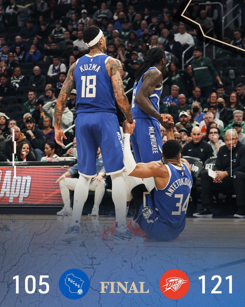 Στο Fiserv Forum, ο Γιάννης Αντετοκούνμπο τα έδωσε όλα, πέτυχε τριπλ-νταμπλ, αλλά, δεν κατάφερε να ανακόψει την ξέφρενη πορεία της Θάντερ. Η ομάδα από την Οκλαχόμα, κορυφαία της Δύσης με ρεκόρ 56-12, νίκησε 121-105 τους Μπακς, μέσα στο Μιλγουόκι, φτάνοντας τις δέκα νίκες στα έντεκα τελευταία παιχνίδια.