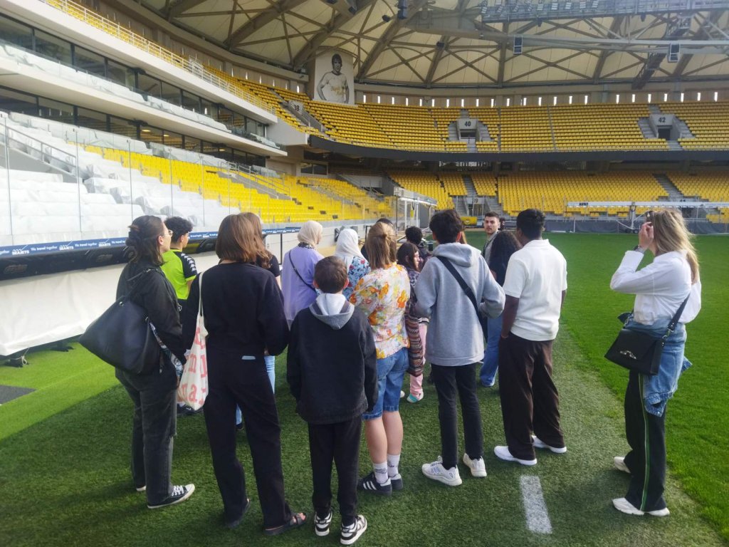 Τα παιδιά, ηλικίας 14-17 ετών, και οι συνοδοί τους ξεναγήθηκαν στους χώρους του γηπέδου και έμαθαν πολλά για την ΑΕΚ και την ιστορία της, αλλά και για το υπερσύγχρονο γήπεδό της, το οποίο θαύμασαν.