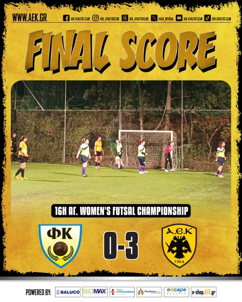 Τη νίκη με 3-0 πήρε η γυναικεία ομάδα Futsal της ΑΕΚ στην Καισαριανή, απέναντι στον Φωστήρα, στο πλαίσιο της 16ης αγωνιστικής του πρωταθλήματος. Έτσι, οι «κιτρινόμαυρες» του Νίκου Σταυρίδη συνεχίζουν την εξαιρετική τους πορεία, έχοντας ήδη κατακτήσει το Κύπελλο Ελλάδας.