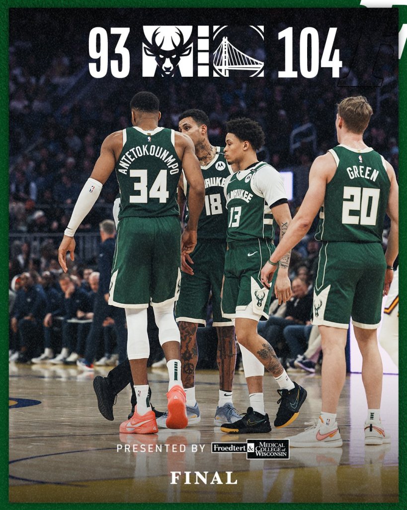 Στο Σαν Φρανσίσκο, οι Μιλγουόκι Μπακς δέχθηκαν σερί 8-0, στα τέσσερα τελευταία λεπτά του παιχνιδιού, με αποτέλεσμα να γνωρίσουν την ήττα από τους Γκόλντεν Στέιτ Γουόριορς. Παρά την απουσία του Στεφ Κάρι, οι γηπεδούχοι φόρτσαραν στο τέλος και, με κορυφαίο τον Τζίμι Μπάτλερ, επικράτησαν 104-93. Ο Γιάννης Αντετοκούνμπο ήταν από τους λίγους που προσπάθησαν, για λογαριασμό των Μπακς, όμως, δεν είχε καλά ποσοστά ευστοχίας.