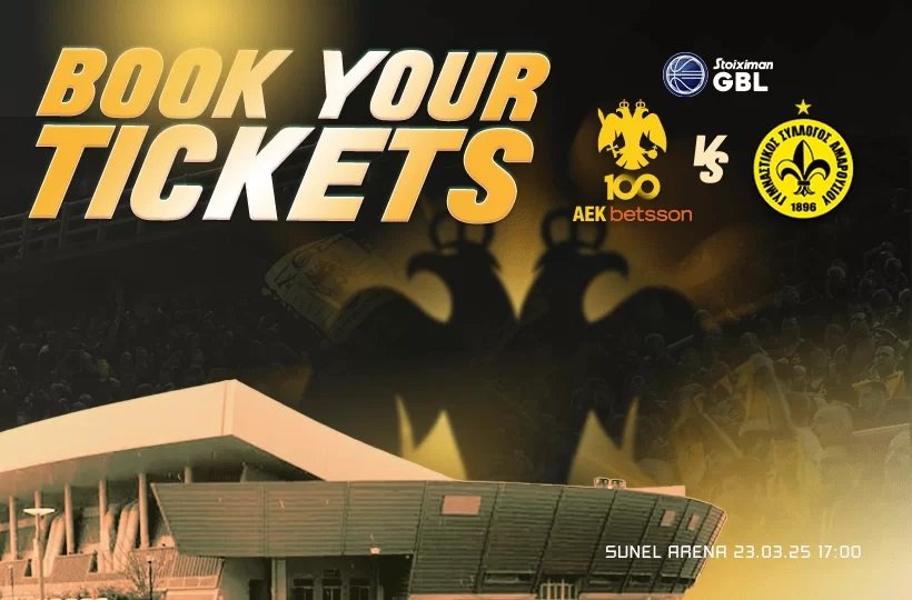 Η ΑΕΚ Betsson BC ανακοινώνει, ότι συνεχίζεται η διάθεση των εισιτηρίων για την αναμέτρηση με αντίπαλο το Μαρούσι, η οποία θα διεξαχθεί στο πλαίσιο της 22ης και τελευταίας αγωνιστικής της κανονικής διάρκειας της Stoiximan GBL, την Κυριακή (23/03), στις 17:00, στη SUNEL Arena.