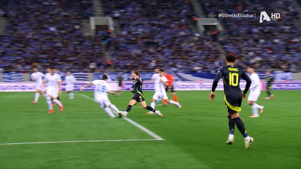 Στο 33' η Σκωτία κέρδισε πέναλτι σε μία φάση που ο ΜακΤόμινεϊ πατάει τον Ρότα, με τον Σκωτσέζο να ευστοχεί για το 1-0.
