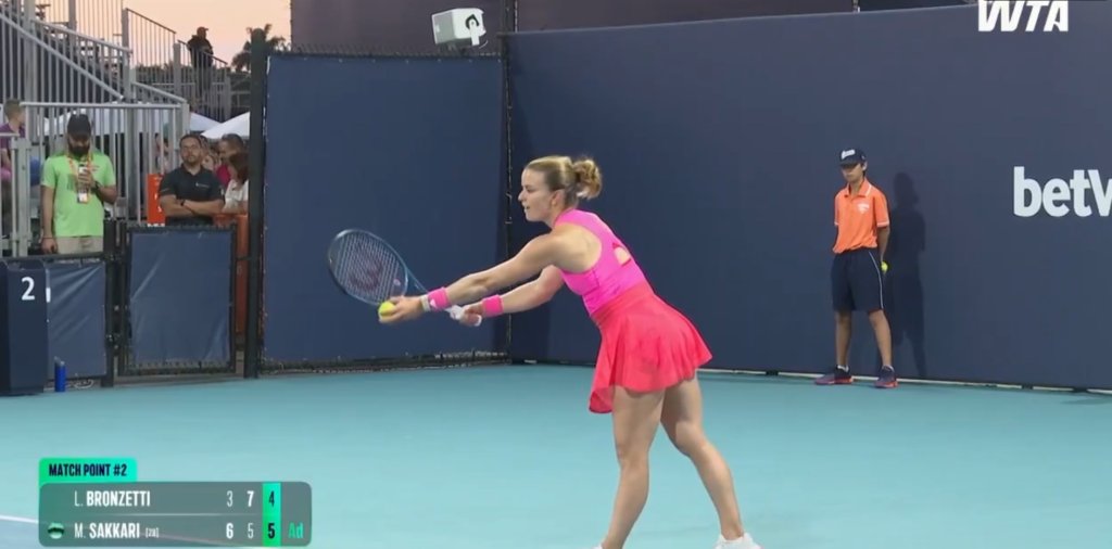 Greece LIGHTNING! @mariasakkari leaves it all on the court and defeats Bronzetti 6-3, 5-7, 6-4. #MiamiOpen pic.twitter.com/sUWIFKrO5B