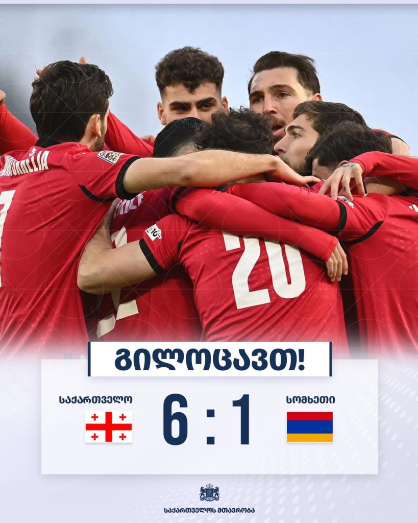 Η Γεωργία διέλυσε με 6-1 τους Αρμένιους και παρέμεινε στη 2η κατηγορία με συνολικό σκορ, 9-1.