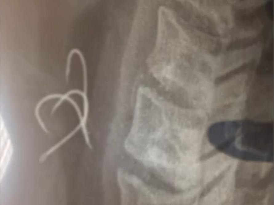 Ο άνδρας πήγε μόνος του στο νοσοκομείο του Αγρινίου, όπου μόλις οι γιατροί είδαν την ακτινογραφία του σοκαρίστηκαν. Τρία αγκίστρια είχαν «καρφωθεί» στον οισοφάγο του.