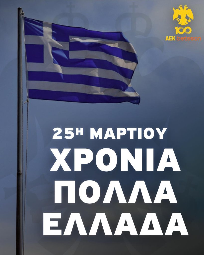 Και η ΚΑΕ ΑΕΚ τιμά την 25η Μαρτίου. Σε σχετικό της ποστάρισμα αναφέρει: