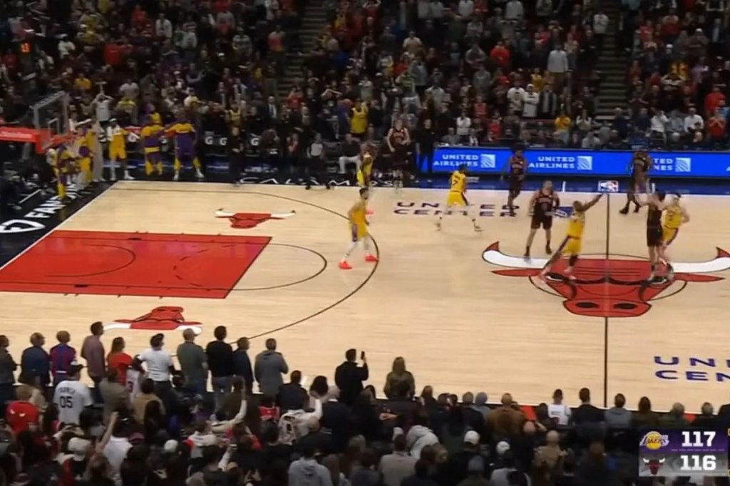 Λίγες ώρες πριν, η ομάδα του Λος Άντζελες είχε νικήσει τους Πέισερς, με buzzer beater του Λεμπρόν. Μπροστά στο κοινό τους, στο United Center, οι Μπουλς μπήκαν δυνατά, προηγήθηκαν 24-11, αλλά, στη συνέχεια, οι Λέικερς πήραν τον έλεγχο. Προηγήθηκαν 58-59 στο ημίχρονο, μπήκαν με +16, 75-91, στο τέταρτο 12λεπτο και, στο ξεκίνημα της τελευταίας περιόδου, είχαν αποκτήσει διαφορά 18 πόντων, 78-96. Από ασίστ του Λεμπρόν, ο Ντόντσιτς έκανε το 92-105, στα 5:27 λεπτά για το φινάλε, αλλά, οι Μπουλς δεν είχαν πει την τελευταία τους λέξη. Με το σκορ στο 110-115 και 12 δευτερόλεπτα για το φινάλε ο Γουίλιαμς ευστόχησε σε τρίποντο για να μειώσει σε 113-115. Οι Λέικερς πήγαν να κάνουν γρήγορα την επαναφορά, αλλά ο Λεμπρόν έκανε λάθος πάσα, με τον Γκίντι να κλέβει την μπάλα και να πασάρει στον Γουάιτ, που με τρίποντο έκανε το 116-115 με 6.5 δευτερόλεπτα για το τέλος! Οι Λέικερς είχαν την επόμενη επίθεση και ο Ριβς με λέι-απ έκανε το σκορ 116-117, οι Μπουλς δεν είχαν τάιμ-άουτ, αλλά ο Γκίντι, σουτάροντας από το κέντρο, χάρισε τη νίκη στους γηπεδούχους, σε ένα απίθανο φινάλε.