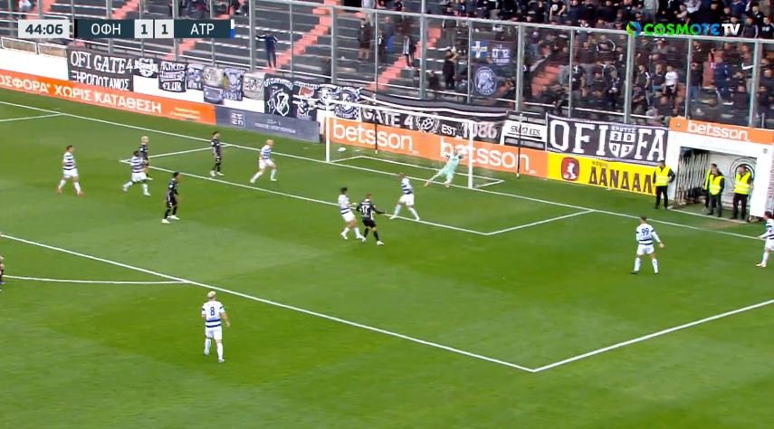 Στο 44ο λεπτό μετά από γύρισμα του Σενγκελια από δεξιά, ο Γκονζάλες έπιασε φοβερό σουτ μέσα από την περιοχή αλλά η μπάλα τράνταξε το δοκάρι του Ατρομήτου