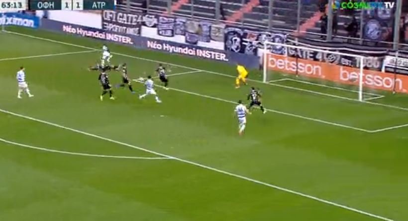 Στο 64’ μετά από γύρισμα από αριστερά ο Καραμάνης έκανε το σουτ από το πέναλτι και η Μπρεσάν έσωσε εντυπωσιακά