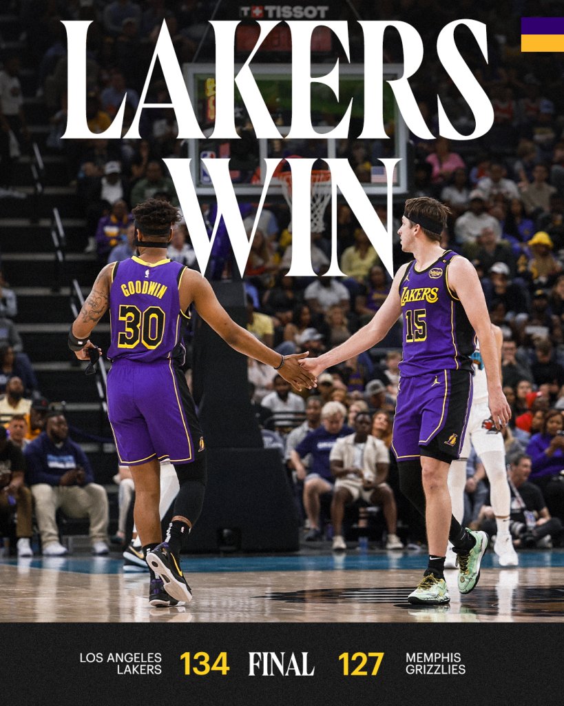 Οι Λος Άντζελες Λέικερς πήγαν στο Μέμφις, έχοντας τέσσερις ήττες στα πέντε τελευταία παιχνίδια, και επικράτησαν 134-127 των Γκρίζλις, χάρη στην εξαιρετική τριπλέτα Λεμπρόν-Ντόντσιτς-Ριβς. Στα πρώτα λεπτά της δεύτερης περιόδου, οι Λέικερς απέκτησαν προβάδισμα 20 πόντων, 30-50, έχοντας 12 εύστοχα τρίποντα και σουτάροντας με 55%. Όμως, δεν συνέχισαν το ίδιο καλά, επιτρέποντας στους γηπεδούχους Γκρίζλις να μειώσουν για το 61-72 του ημιχρόνου. Μάλιστα, οι Γκρίζλις πέρασαν και μπροστά στο σκορ, 77-76, με τους Λέικερς να παραμένουν ψύχραιμοι και να πηγαίνουν με προβάδισμα τριών πόντων, 99-102, στο τελευταίο 12λεπτο. Το προβάδισμα άλλαζε χέρια μέχρι τη στιγμή που ο Ντόντσιτς πέρασε στο παρκέ. Ο Σλοβένος έβαλε τέσσερις μαζεμένους πόντους, ο Φίνεϊ-Σμιθ ευστόχησε σε τρίποντο και οι Λέικερς προηγήθηκαν 113-118, 5:48 λεπτά πριν το φινάλε. Από εκείνο το σημείο, οι Λέικερς είχαν τον έλεγχο και επικράτησαν με 127-134, έχοντας 19/43 τρίποντα.
