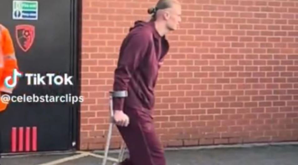 Erling Haaland seen leaving Bournemouth in a protective boot and crutches. ????