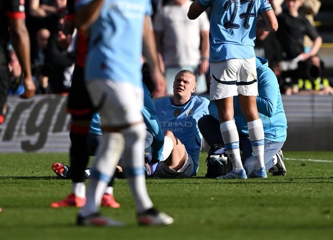 Η εικόνα του Χάαλαντ με μπότα και πατερίτσες αμέσως μετά τον προημιτελικό με την Μπόρνμουθ προκάλεσε έντονη ανησυχία στους φίλους της Σίτι. Μπορεί η ζημιά να μην είναι τόσο μεγάλη όσο αρχικά είχαν φοβηθεί οι άνθρωποι της Μάντσεστερ, ωστόσο ο Νορβηγός φορ αναμένεται να μείνει εκτός μέχρι το τέλος του πρωταθλήματος, ενώ θα χάσει σίγουρα και τον ημιτελικό κυπέλλου με τη Νότιγχαμ. Ο σύλλογος τόνισε ότι ο Χάαλαντ, ο οποίος έχει σκοράρει 30 γκολ σε 40 αγώνες αυτή τη σεζόν, έκανε εξετάσεις τη Δευτέρα και θα επισκεφθεί ειδικό γιατρό, όπου θα διαπιστωθεί ο χρόνος αποθεραπείας.