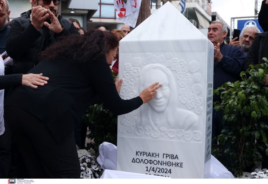 Σήμερα, ένα χρόνο μετά τη δολοφονία, συγγενείς, φίλοι, φορείς, ενώσεις, συγκεντρώθηκαν έξω από το αστυνομικό τμήμα για τα αποκαλυπτήρια του μνημείου για την Κυριακή Γρίβα.