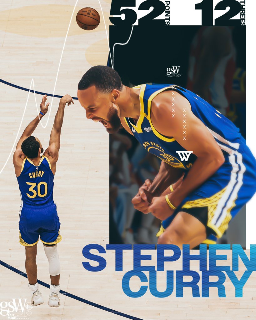 Σε 36:32 λεπτά συμμετοχής, ο Στεφ Κάρι είχε 52 πόντους (4/11 δίποντα, 12/20 τρίποντα, 8/8 βολές), 10 ριμπάουντ, 8 ασίστ, 5 κλεψίματα και 1 μπλοκ. Ο Τζίμι Μπάτλερ πρόσθεσε 27 πόντους, με τον Ντρέιμοντ Γκριν να φτάνει σε τριπλ-νταμπλ, έχοντας 13 πόντους, 12 ασίστ και 10 ριμπάουντ. Τρίτη σερί ήττα για τους Μέμφις Γκρίζλις, παρά τη σπουδαία εμφάνιση του Ζα Μοράντ, με 36 πόντους και 6 ασίστ.