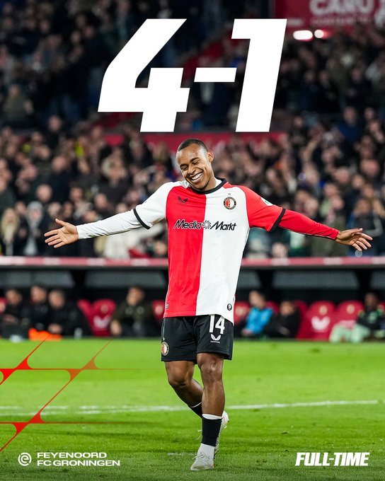 Σημαντική νίκη για τη Φέγενορντ η οποία κέρδισε με 4-1 τη Χρόνινχεν και πάτησε στην 3η θέση προσπερνώντας την Ουτρέχτη.