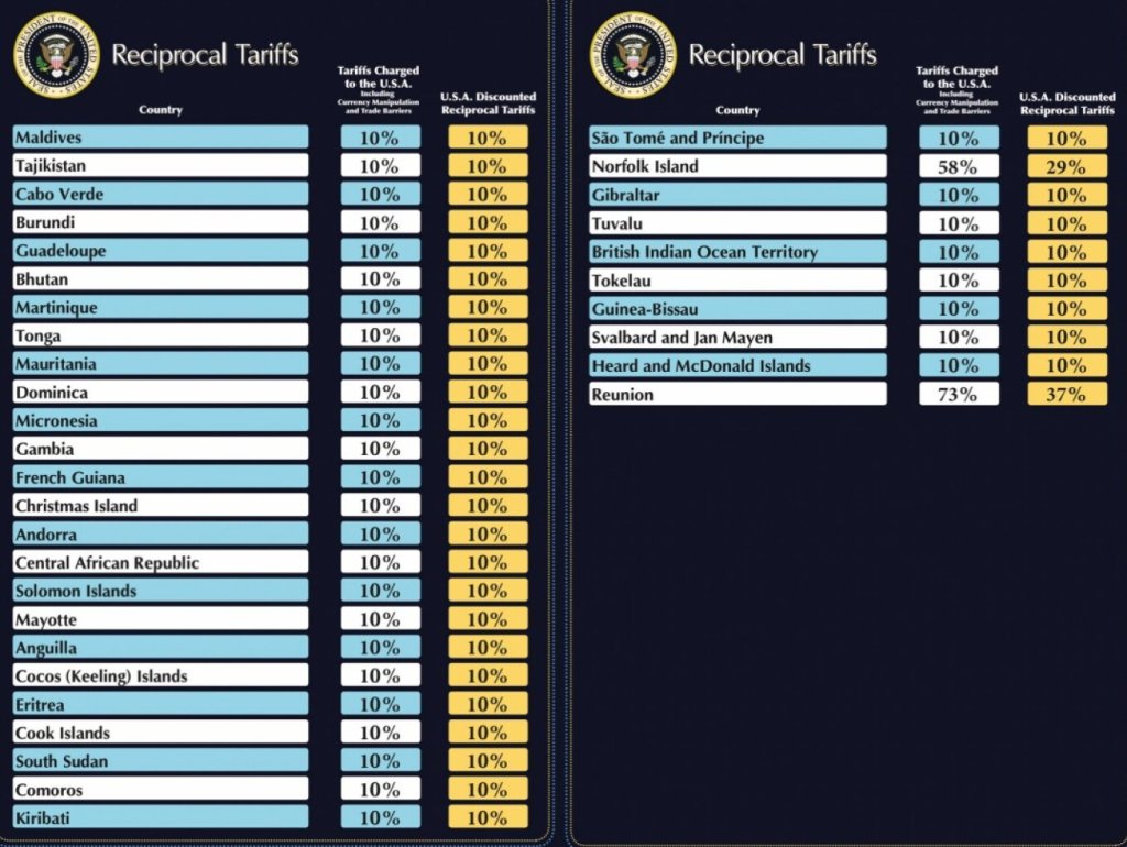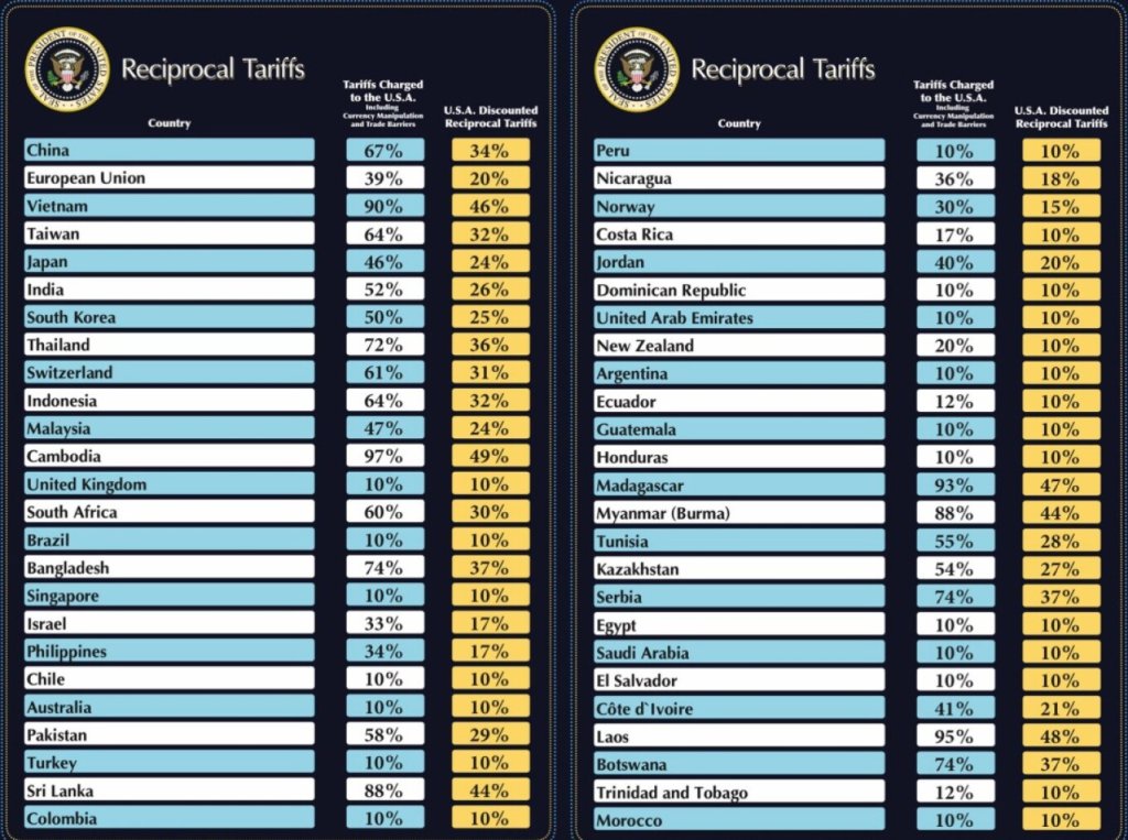 Ο πρόεδρος Τραμπ ανακοίνωσε ανταποδοτικούς δασμούς για δεκαδες χώρες κρατώντας μεγάλους πίνακες όπου αναφερόταν το ποσοστό του δασμού για κάθε χώρα και την Ευρωπαϊκή Ένωση. Αναλυτικά: