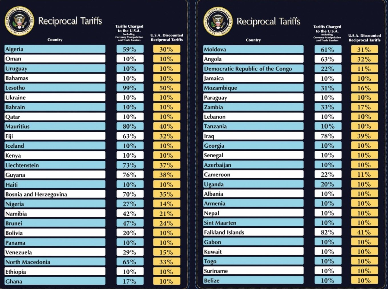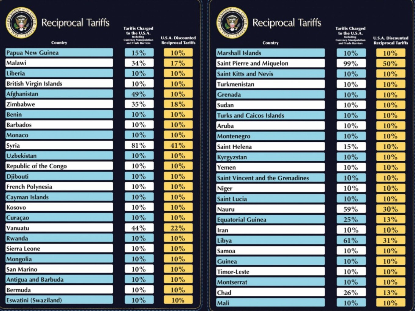 Δείτε αναλυτικά τους πίνακες με τους δασμούς Τραμπ ανά χώρα: