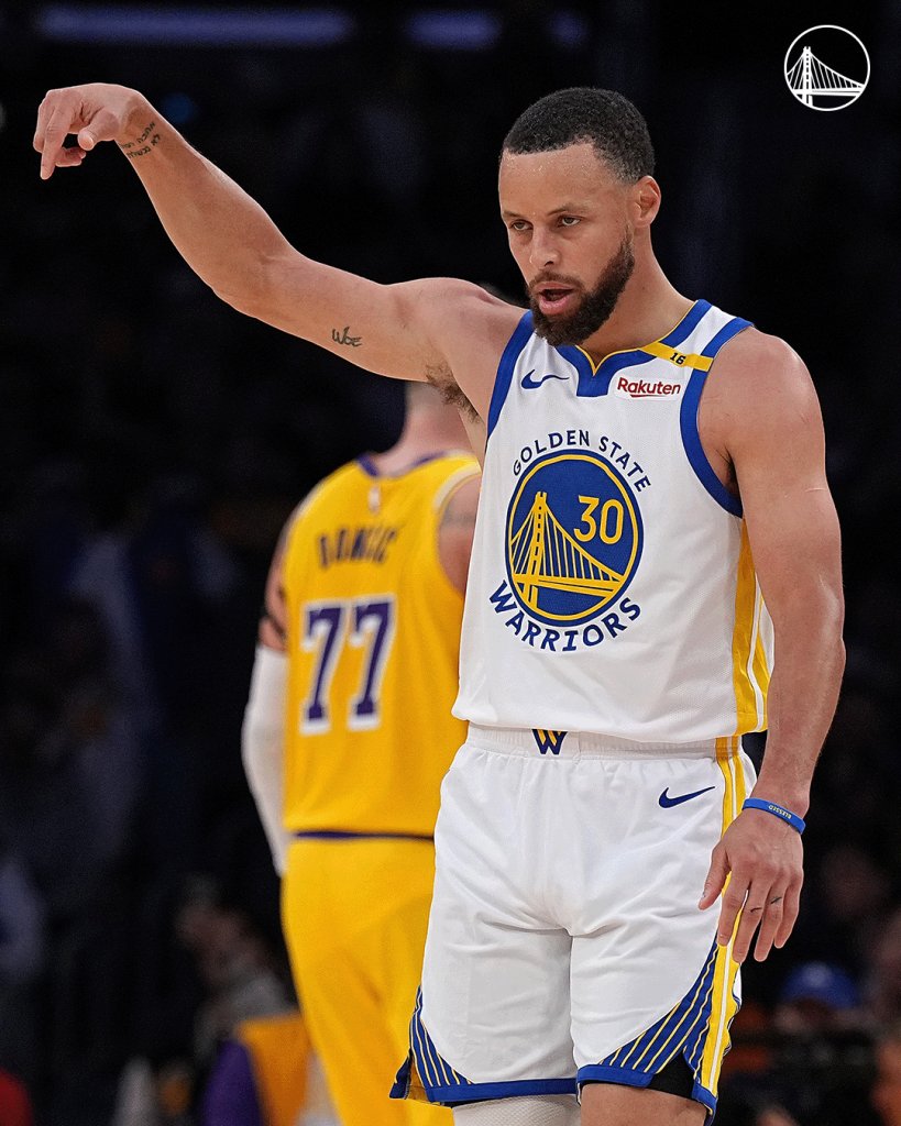 Λίγες μέρες μετά την επική εμφάνιση, με τους 52 πόντους, κόντρα στους Γκρίζλις, ο Στεφ Κάρι έβαλε 37 πόντους (6/10 δίποντα, 4/11 τρίποντα, 13/14 βολές) απέναντι στους Λέικερς. Ο Μπράντιν Ποντζιέμσκι σημείωσε 28 πόντους με 8/10 τρίποντα, για λογαριασμό των Γουόριορς. Οι Λέικερς ηττήθηκαν για πρώτη φορά, φέτος, από τους Γουόριορς, με τον Λεμπρόν Τζέιμς να έχει 33 πόντους (10/15 σουτ) και 9 ασίστ σε 39:51 λεπτά. Ο Λούκα Ντόντσιτς είχε 0/6 τρίποντα και 19 πόντους σε 37:50 λεπτά συμμετοχής.