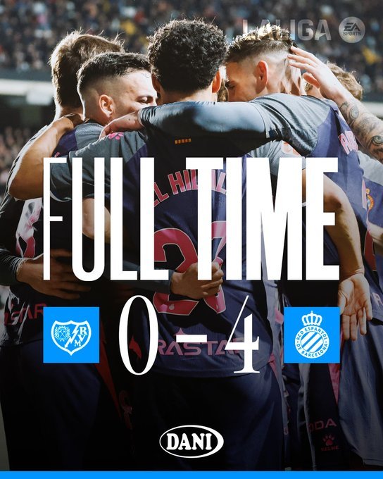 Ένα τεράστιο διπλό πανηγύρισε η Εσπανιόλ, καθώς πέρασε με το επιβλητικό 4-0 από την έδρα της Ράγιο Βαγιεκάνο και βρέθηκε στο +5 από την ζώνη του υποβιβασμού.