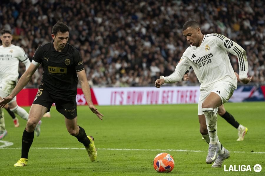Στο 20’ ο Ντιακαμπί πέτυχε αστοχεί αυτογκόλ το οποίο δεν μέτρησε για οφσάιντ στον Εμπαπέ και στο 24’ ο Ντιακαμπί σούταρε στο πλαϊνό δίχτυ! Στο 34’ και στο 35’ ο Μαμαρντασβίλι απέκρουσε τα διαδοχικά σουτ του Εμπαπέ και στο 36’ μετά από κόρνερ ο Γάλλος είχε και δοκάρι. Στο 42’ το σουτ του Μπέλινγκχαμ έξυσε το δοκάρι της Βαλένθια και στο 48’ την ίδια τύχη είχε και το πλασέ του Εμπαπέ.