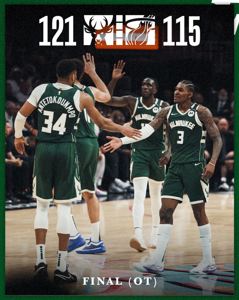 Συναρπαστικό παιχνίδι στο Kaseya Center, με τους Μιλγουόκι Μπακς να νικάνε 121-115, στην παράταση, τους Μαϊάμι Χιτ. Ο Γιάννης Αντετοκούνμπο έφτασε τα 54 τριπλ-νταμπλ, σε κανονικές περιόδους, πραγματοποιώντας, ακόμα μια σπουδαία εμφάνιση, έχοντας την πολύτιμη βοήθεια του Κέβιν Πόρτερ Τζούνιορ.