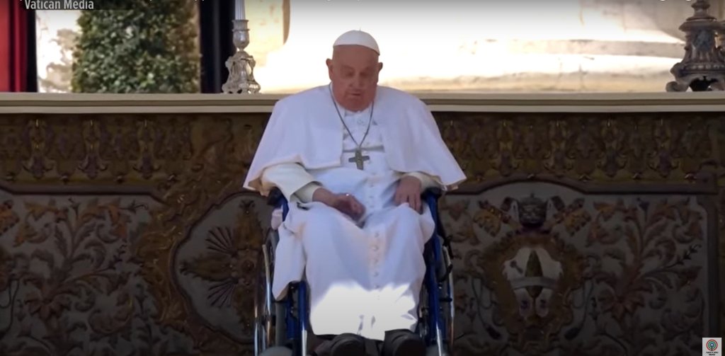 Εμφανώς καταβεβλημένος ο πάπας Φραγκίσκος έκανε το μεσημέρι της Κυριακής (06.04.2025), μια ευχάριστη έκπληξη στους πιστούς που βρίσκονται στην πλατεία του Αγίου Πέτρου. Συνεργάτες του ποντίφικα, τον συνόδευσαν με αναπηρικό αμαξίδιο μπροστά στην βασιλική εκκλησία.