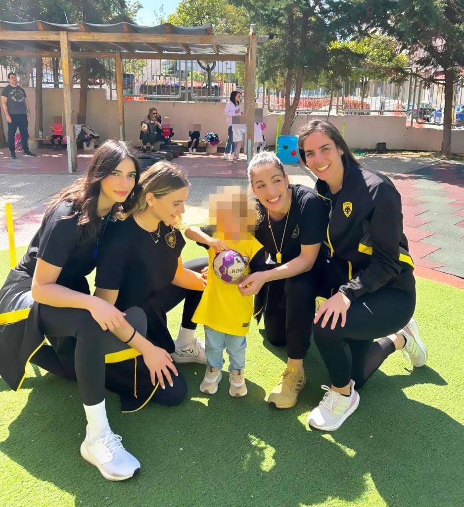 Έρικα Ζενέλι, Αναστασία Παναγιωτίδου, Αγγελική Καρέλα και Βαρβάρα Πυριτίδου, γιόρτασαν μαζί με τους μικρούς μαθητές και μαθήτριες, τους μίλησαν για τα σπορ και το Χάντμπολ και πέρασαν πανέμορφες στιγμές.