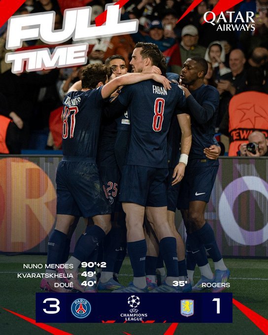 ΠΑΡΙ: Ντοναρούμα, Χακίμι, Μπεράλντο, Πάτσο, Μέντες, Βιτίνια, Νέβες, Ρουίθ (71’ Ζαϊρ Εμερί), Κβαρατσχέλια (90+3’ Ράμος), Ντεμπελέ, Ντουέ (71’ Μπαρκολά).