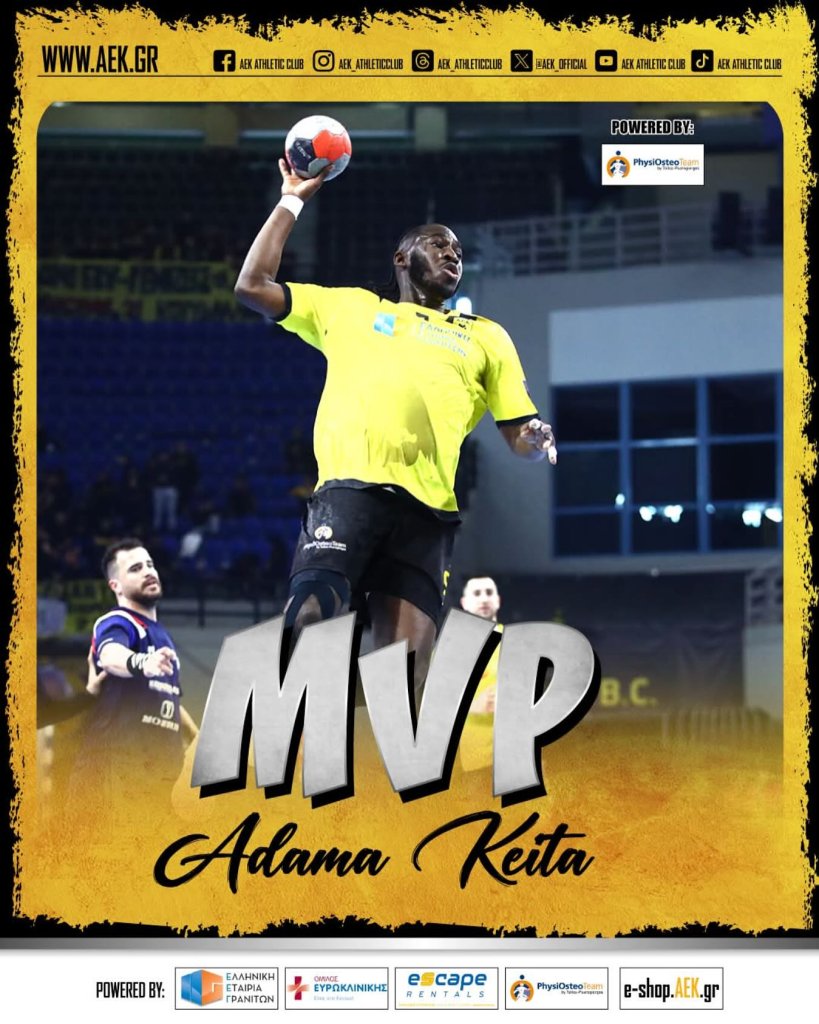 Η ομάδα χάντμπολ της ΑΕΚ πήρε την πρόκριση στον τελικό του Φάιναλ Φορ του Κυπέλλου, μετά την εύκολη νίκη με 24-40 επί του Ζαφειράκη Νάουσας και μετά το τέλος της αναμέτρησης ο Αντάμα Κεϊτά ήταν αυτός που κέρδισε τον τίτλο «PhysiOsteo Team» MVP, καθώς με την καλή του παρουσία και τα 4 γκολ που πέτυχε κέρδισε τα βλέμματα.
