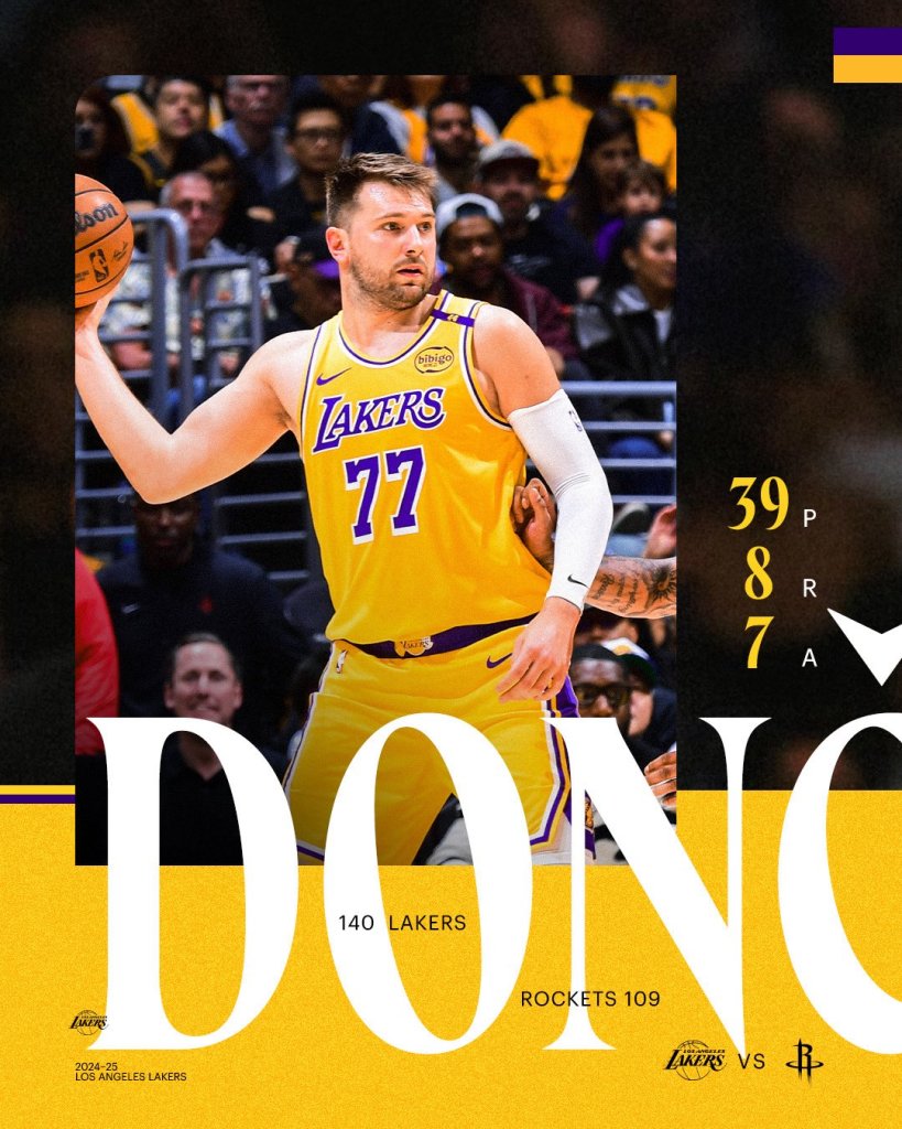 Με μεγάλο πρωταγωνιστή τον Λούκα Ντόντσιτς, οι Λος Άντζελες Λέικερς συνέτριψαν 140-109 τους Χιούστον Ρόκετς, "κλείδωσαν" την τρίτη θέση στη Δύση, φτάνοντας τις 50 νίκες για δεύτερη φορά τα 14 τελευταία χρόνια. Μπροστά στο κοινό τους, οι Λέικερς πάτησαν γκάζι από τη δεύτερη περίοδο, όπου έκαναν επιμέρους 40-24, με αποτέλεσμα, στο τέλος του ημιχρόνου, να προηγούνται 78-56. Ίδια εικόνα και στο τρίτο 12λεπτο, με τους Λεμπρόν, Ντόντσιτς να ξεκουράζονται στη τέταρτη περίοδο, ενόψει και των playoffs που ακολουθούν.