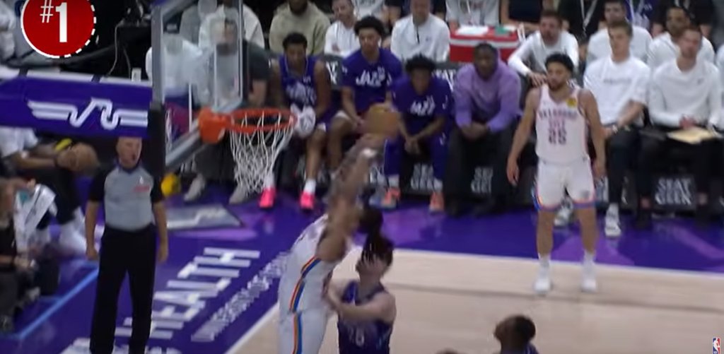 Ο Τζέιλεν Γουίλιαμς της Οκλαχόμα Σίτι Θάντερ πέταξε την μπάλα στο ταμπλό και κάρφωσε, θεαματικά, στο καλάθι των Γιούτα Τζαζ. Η φάση αυτή βρίσκεται στην κορυφή με τις δέκα καλύτερες φάσεις, από τα 15 παιχνίδια που έγιναν στο NBA.