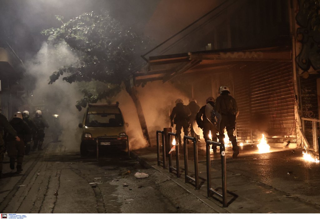 Νύχτα έντασης στα Εξάρχεια, με αγνώστους να επιτίθενται με μολότοφ και την αστυνομία να απαντά με χημικά.