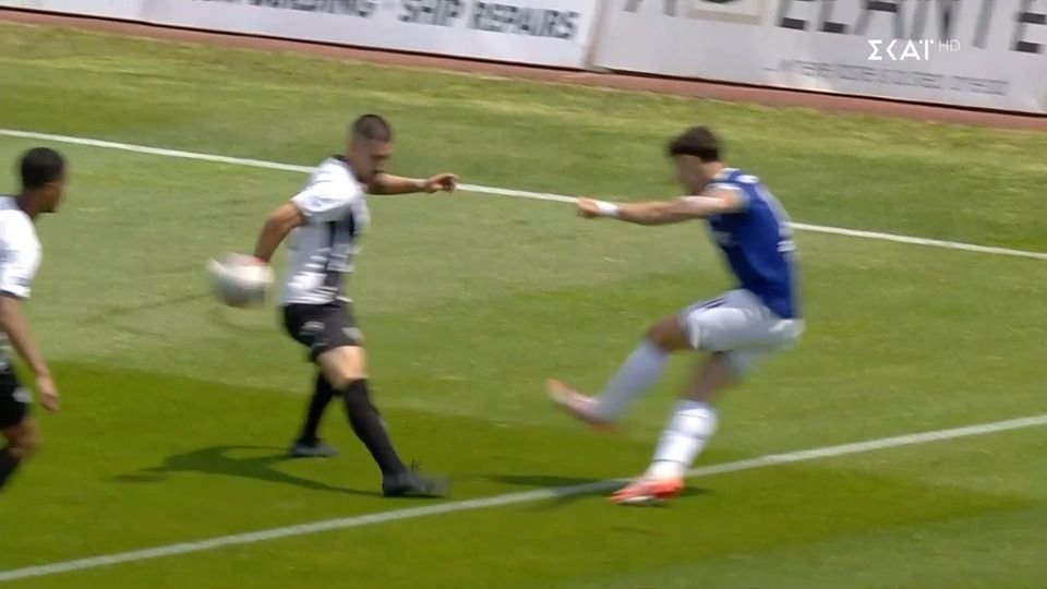 Στο 58ο λεπτό, οι παίκτες της Κηφισιάς ζήτησαν πέναλτι, ο Ευαγγέλου έδειξε να συνεχιστεί το παιχνίδι.