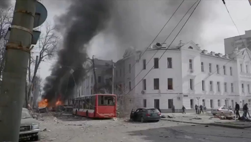 Σύμφωνα με τις τοπικές αρχές, οι πύραυλοι «κατέστρεψαν ολοσχερώς» το κέντρο ανθρωπίνων δικαιωμάτων της πόλης και προκάλεσαν μεγάλες ζημιές σε κτίρια του κέντρου.