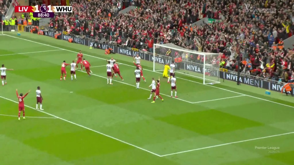 Με γκολ του Φαν Ντάικ στο 89ο λεπτό, η Λίβερπουλ νίκησε 2-1 τη Γουέστ Χαμ, στο "Άνφιλντ", και ήρθε ακόμα πιο κοντά στο να στεφθεί πρωταθλήτρια Αγγλίας. Στο 17ο λεπτό, από ασίστ του Σαλάχ, ο Ντίας έδωσε προβάδισμα στη Λίβερπουλ, η οποία δεν είχε τελική στην εστία μέχρι να δεχτεί την ισοφάριση. Στο 86ο λεπτό, από την ασυνεννοησία Φαν Ντάικ και Ρόμπερτσον, ο Σκωτσέζος έστειλε την μπάλα στα δίχτυα της ομάδας του και η Γουέστ Χαμ, με αυτογκόλ, έφερε το ματς στο 1-1. Τρία λεπτά αργότερα, ο Φαν Ντάικ, με κεφαλιά, λύτρωσε συμπαίκτες και φίλους της Λίβερπουλ.