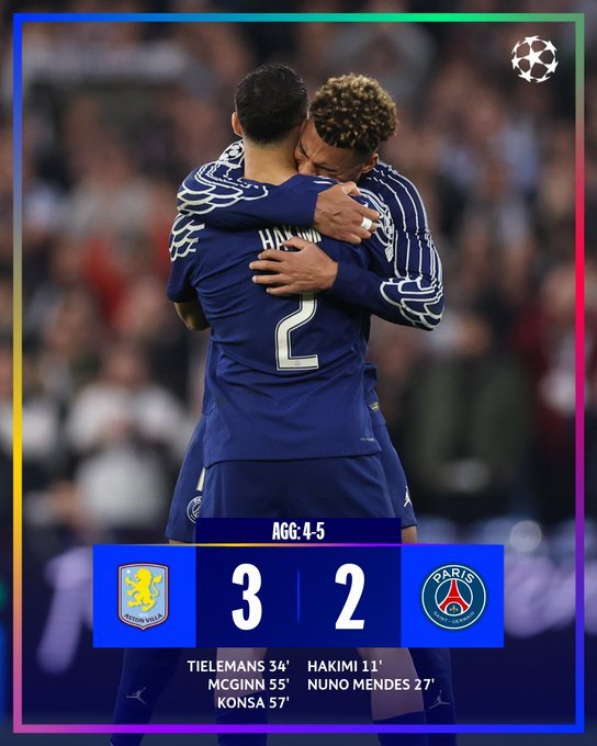 Η Παρί είχε βάλει τις βάσεις πρόκρισης στο Παρίσι, αλλά η Άστον Βίλα... φρόντισε να της κάνει δύσκολη τη ζωή στον επαναληπτικό. Οι Βίλανς επικράτησαν 3-2, είχαν μεγάλες ευκαιρίες για να πάνε το ματς στην παράταση, αλλά ο Ντοναρούμα με φανταστικές επεμβάσεις έστειλε την ομάδα του στα ημιτελικά του Champions League, εκεί όπου θα βρει τον νικητή του ζευγαριού Αρσεναλ - Ρεάλ