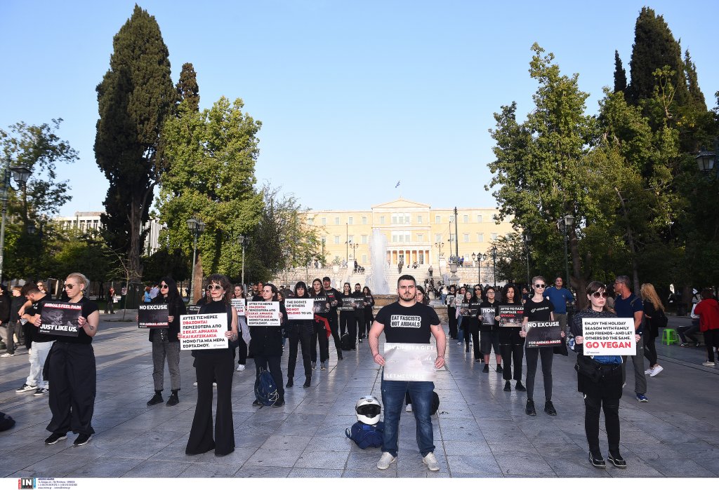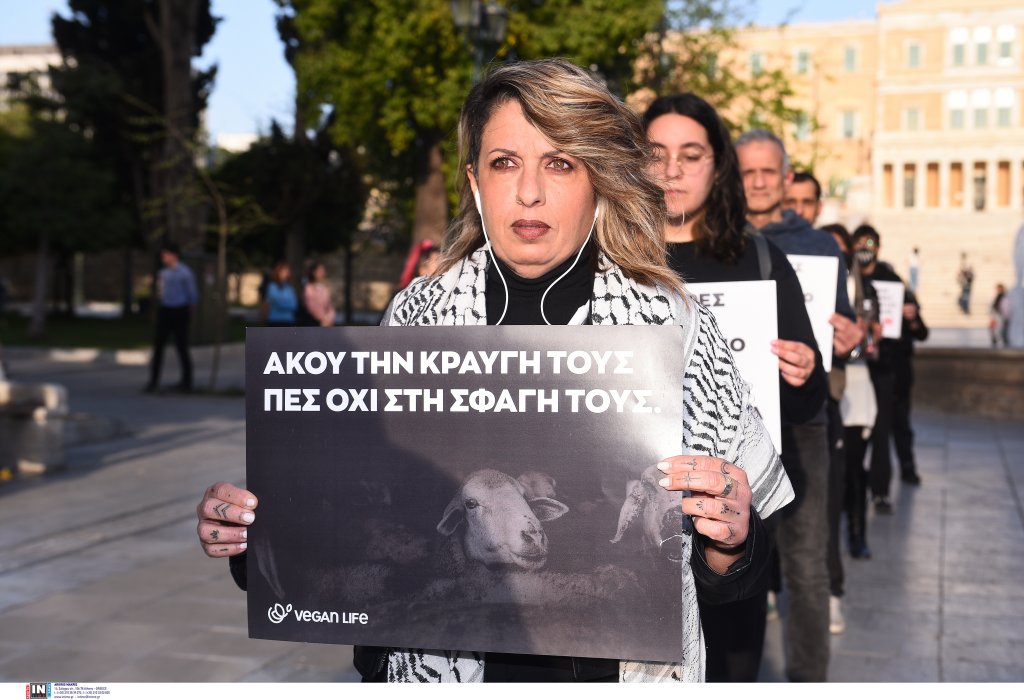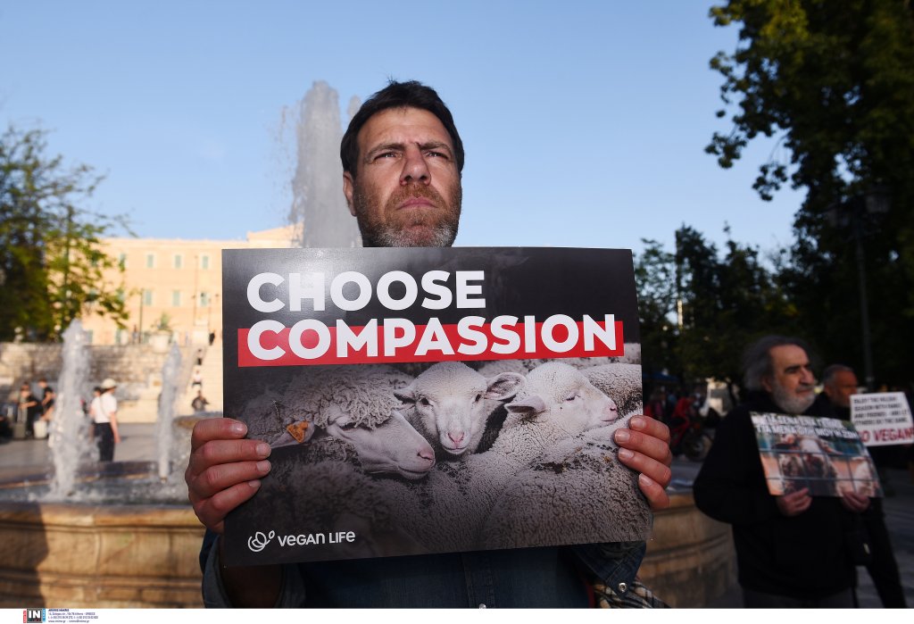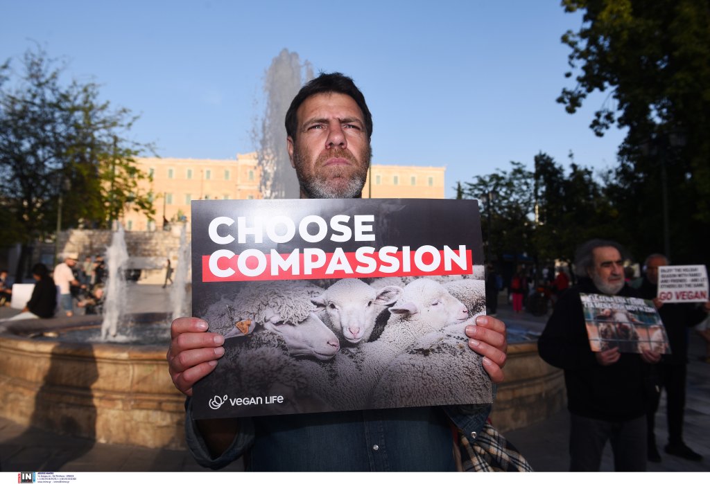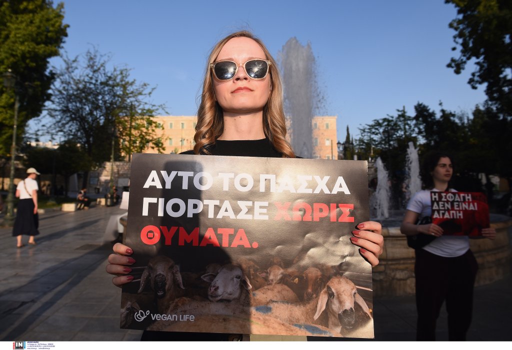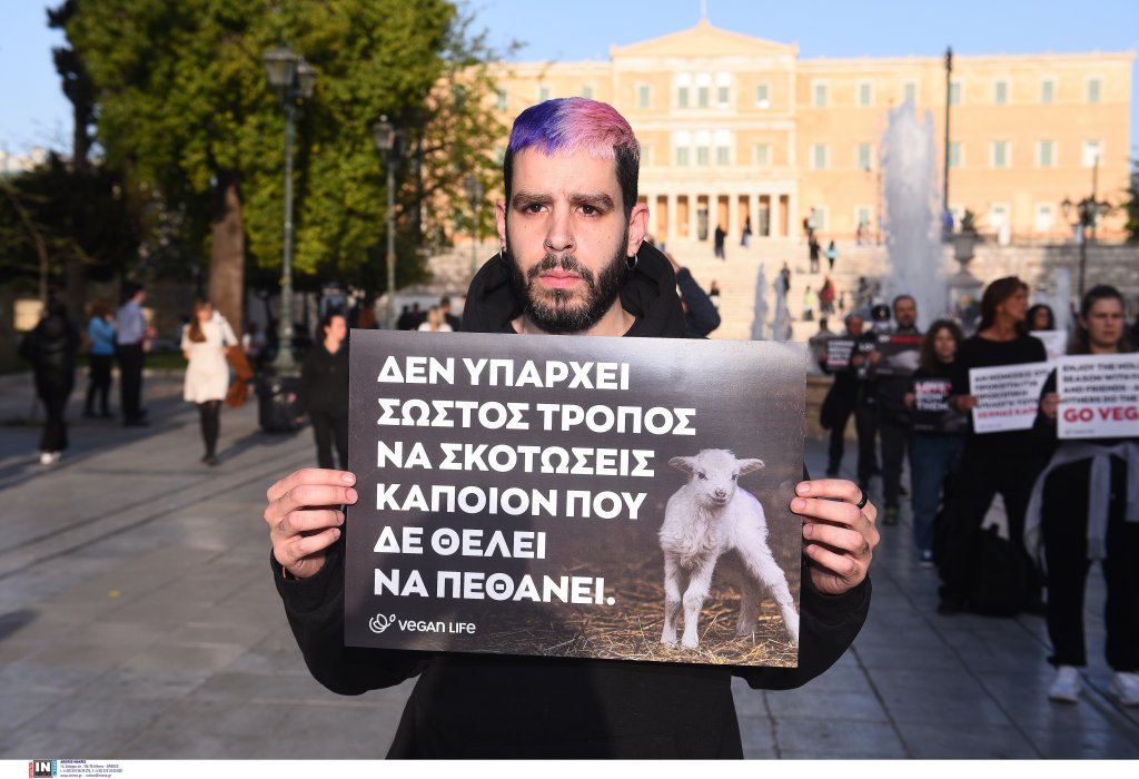 Συγκέντρωση διαμαρτυρίας και ευαισθητοποίησης, ενόψει της Κυριακής του Πάσχα για την οποία «σφάζονται πάνω από 2 εκατομμύρια αρνιά και κατσίκια» όπως αναφέρουν, πραγματοποιούν αυτή την ώρα vegans στο Σύνταγμα.