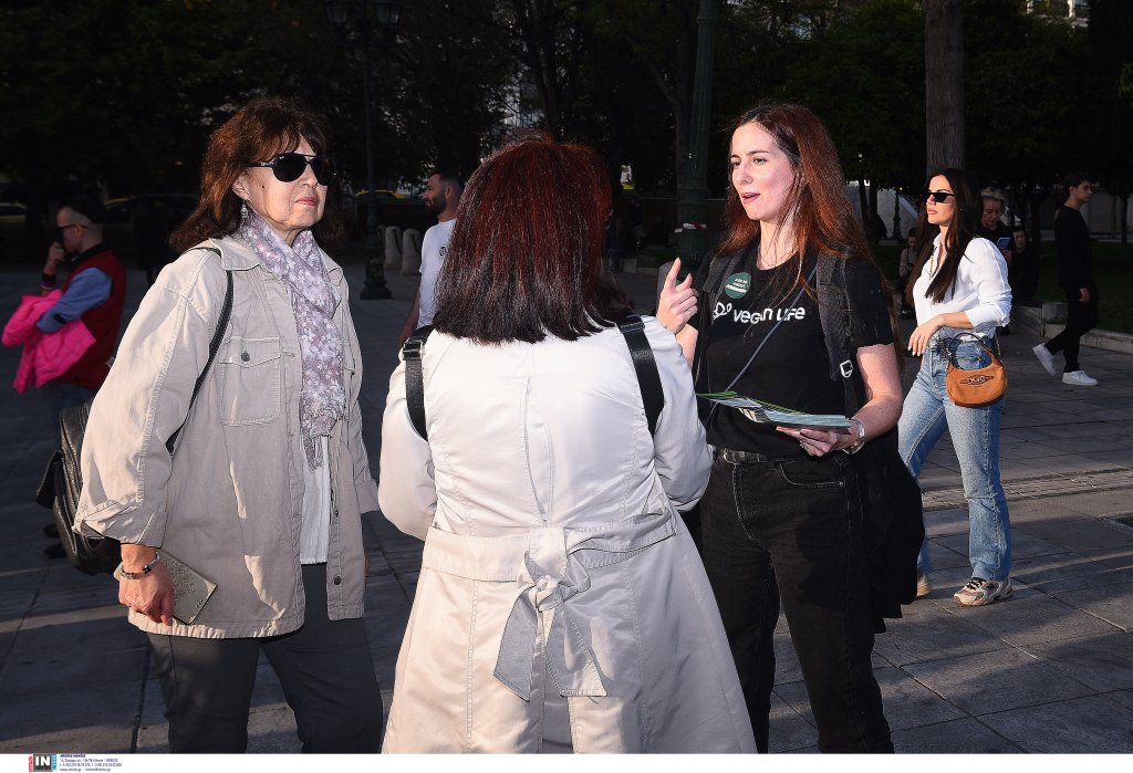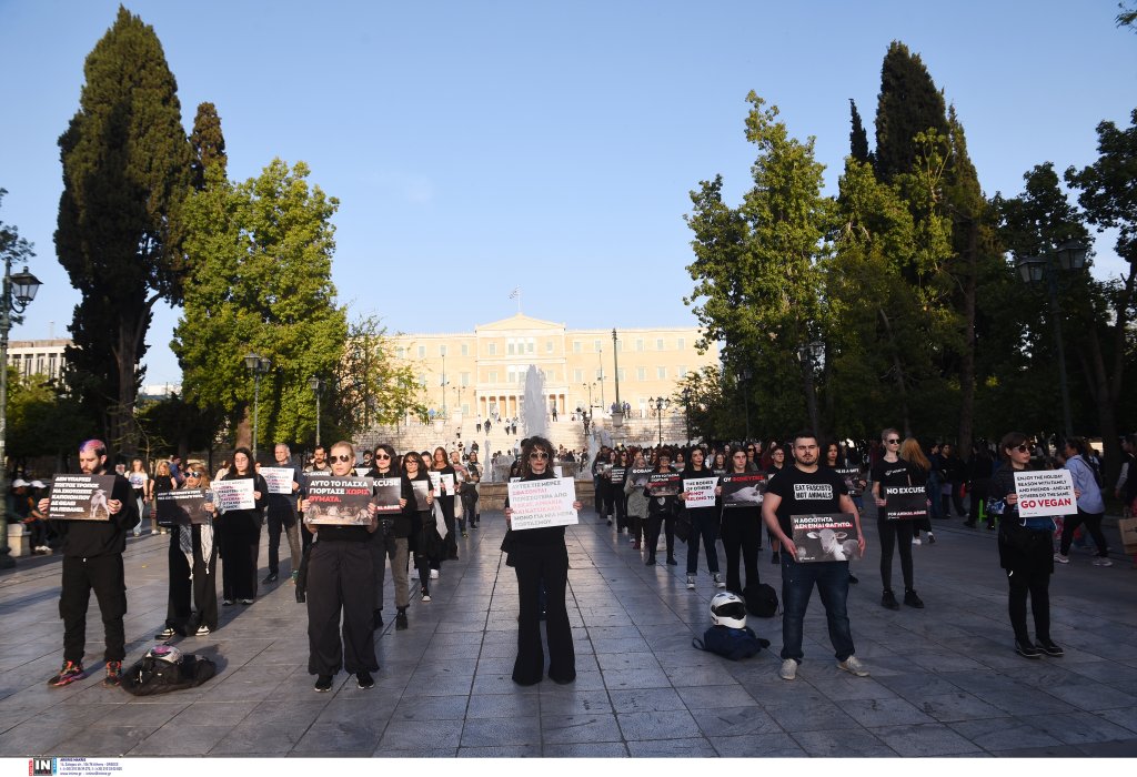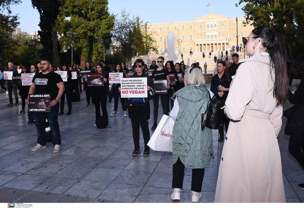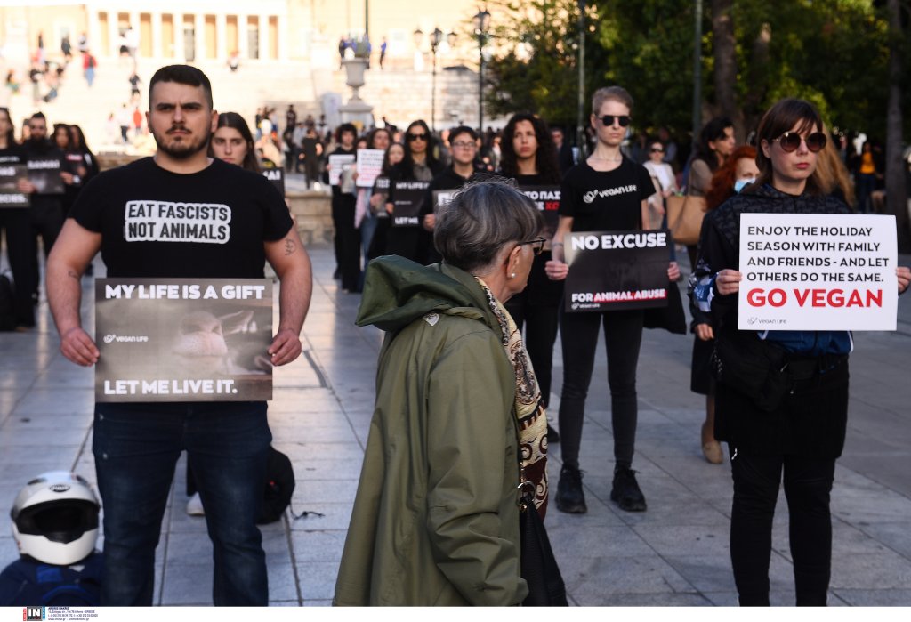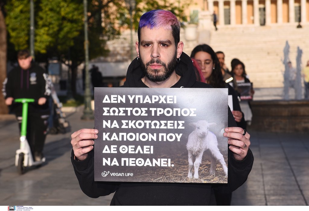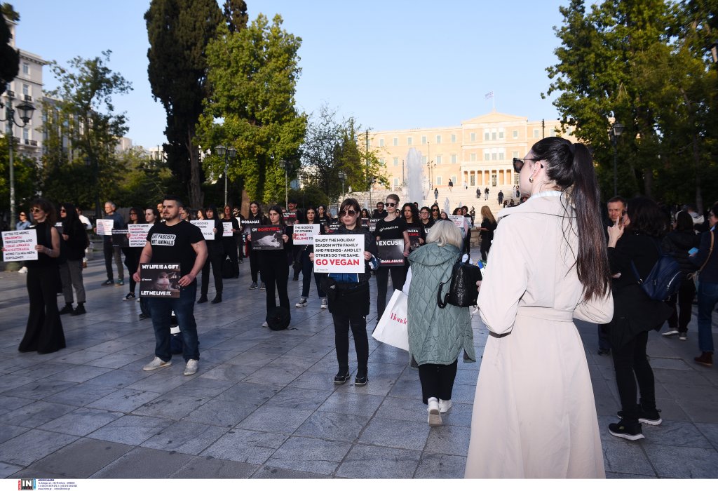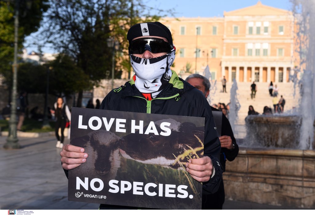 Συγκέντρωση διαμαρτυρίας και ευαισθητοποίησης, ενόψει της Κυριακής του Πάσχα για την οποία «σφάζονται πάνω από 2 εκατομμύρια αρνιά και κατσίκια» όπως αναφέρουν, πραγματοποιούν αυτή την ώρα vegans στο Σύνταγμα.