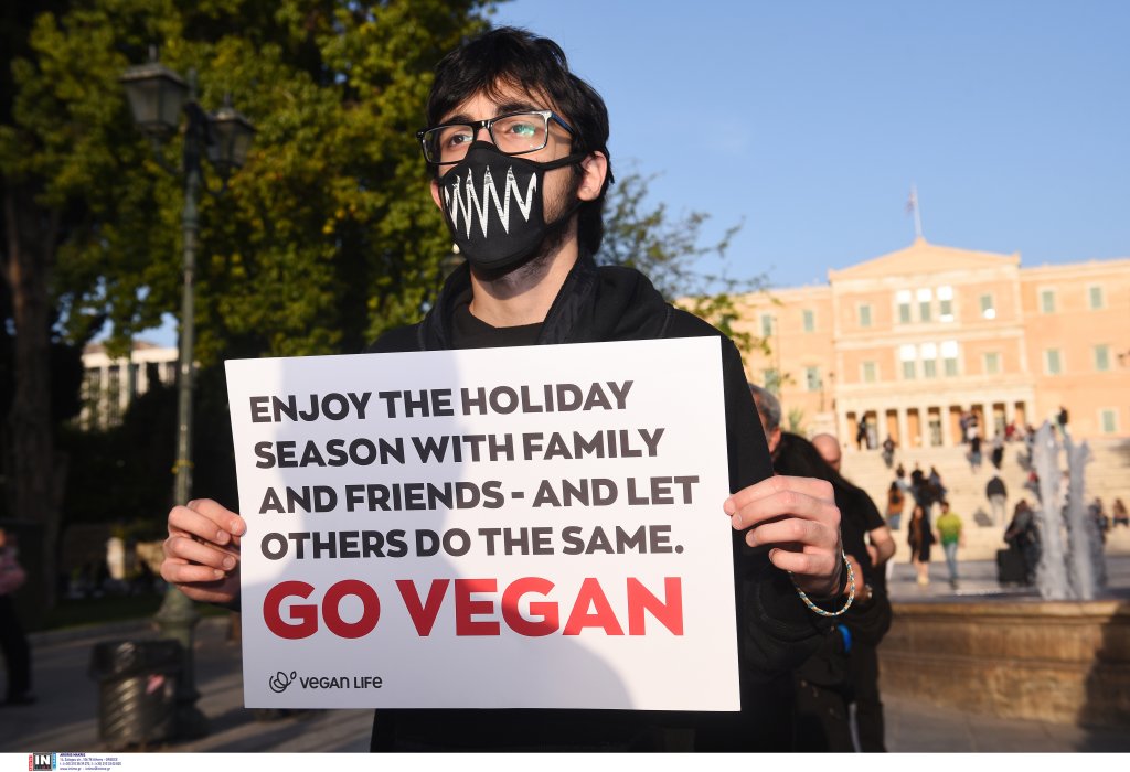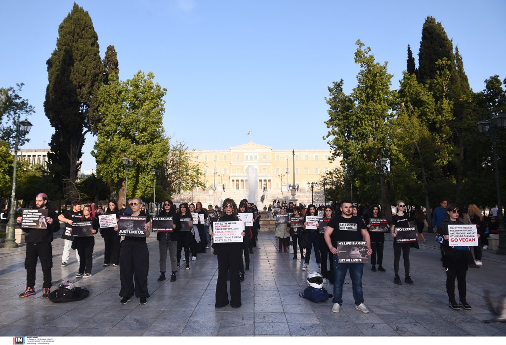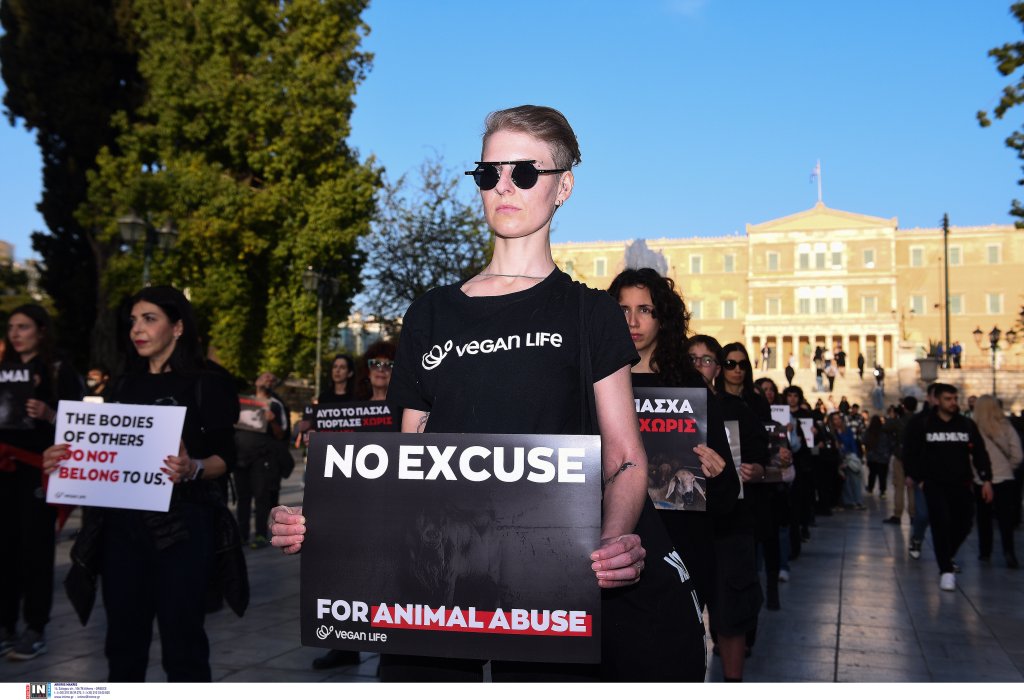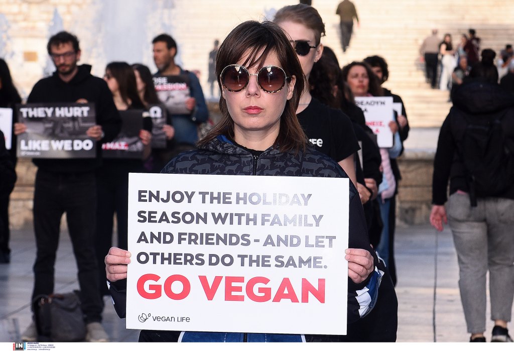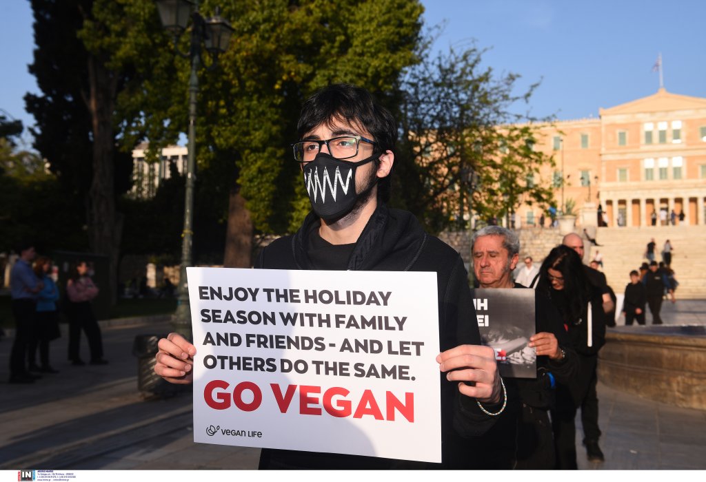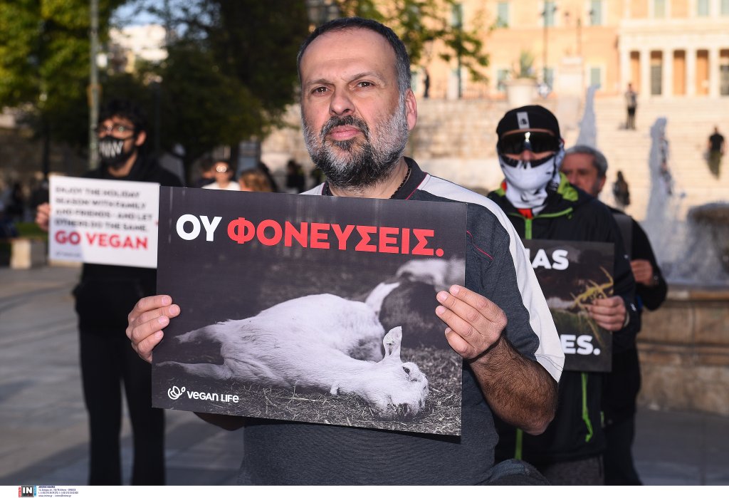 Συγκέντρωση διαμαρτυρίας και ευαισθητοποίησης, ενόψει της Κυριακής του Πάσχα για την οποία «σφάζονται πάνω από 2 εκατομμύρια αρνιά και κατσίκια» όπως αναφέρουν, πραγματοποιούν αυτή την ώρα vegans στο Σύνταγμα.