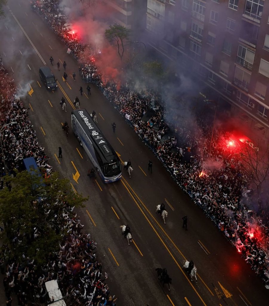 Η Ρεάλ Μαδρίτης ετοιμάζεται να αντιμετωπίσει την Άρσεναλ στη ρεβάνς στο Σαντιάγκο Μπερναμπέου, η οποία θα καθορίσει την πρόκριση στα ημιτελικά του Champions League. Με τους «Κανονιέρηδες» να έχουν μεγάλο προβάδισμα λόγω του 3-0 στο πρώτο παιχνίδι, οι φίλαθλοι της ομάδας θέλησαν να εμψυχώσουν την αποστολή των Μαδριλένων, επιφυλάσσοντας μία “καυτή” υποδοχή με καπνογόνα και συνθήματα.