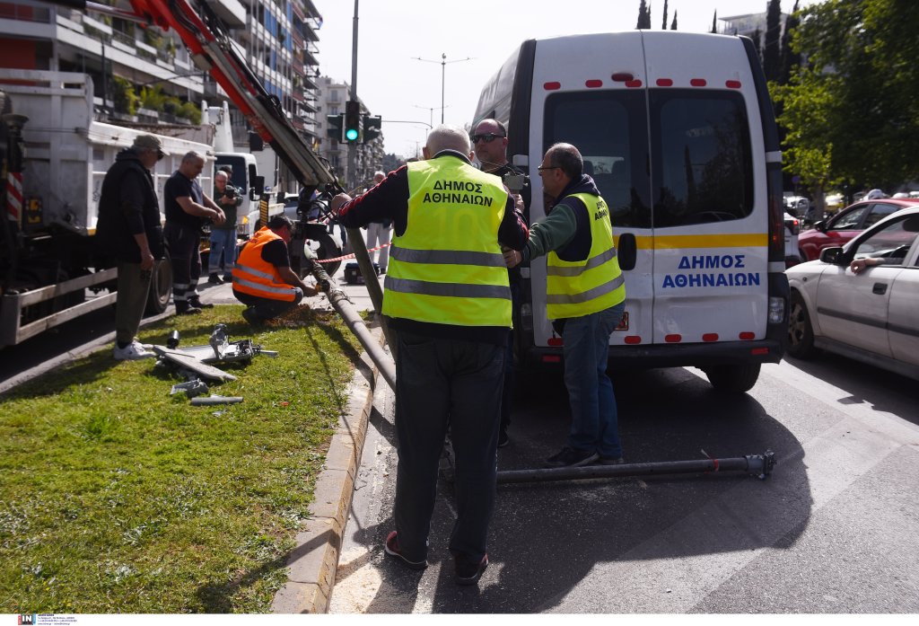 Η μεταλλική κολώνα κόπηκε και καταπλάκωσε τις δύο γυναίκες που περίμεναν να περάσουν στην απέναντι πλευρά του δρόμου.