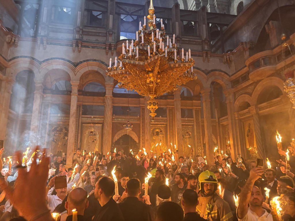 Στους αγίους τόπους, στα Ιεροσόλυμα ο πανίερος ναός της αναστάσεως μετατράπηκε σε ένα μεγαλείο φωτός μετά την τελετή του αγίου φωτός. O ελληνορθόδοξος πατριάρχης Θεόφιλος εξήλθε πριν λίγο από τον Πανάγιο Τάφο κρατώντας 2 δεσμίδες με 33 κεριά που συμβολίζουν τα έτη του χριστού με το ανέσπερο φως. Αμέσως μεταλαμπαδεύεται στους χιλιάδες προσκυνητές και η προσμονή τους δίνει τη θέση της στη χαρά και την ελπίδα. Το απόγευμα το άγιο φως αναμένεται να φτάσει στην Αθήνα και έπειτα να διανεμηθεί σε κάθε άκρη της Ελλάδας.