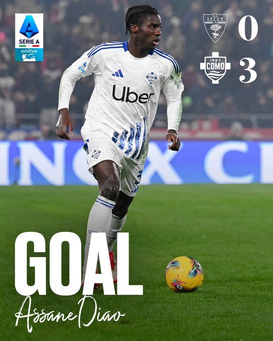 Στο 89' η Κόμο απείλησε με τον Γκαμπριελόνι και στο επόμενο λεπτό ο Ντιαό έγραψε το 0-3 με πλασέ από το πέναλτι.