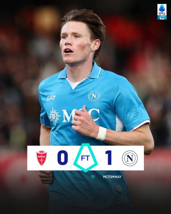 Η Νάπολι, χάρη σε τέρμα του Σκοτ ΜακΤόμινεϊ επικράτησε 1-0 της Μόντσα και έπιασε την Ίντερ(ματς λιγότερο) στους 71 βαθμούς. Ολοένα και πιο κοντά στην Serie B η ομάδα του Κυριακόπουλου.
