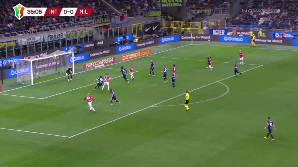 Με δυο γκολ του Λούκα Γιόβιτς, η Μίλαν νίκησε 3-0 την, τυπικά, γηπεδούχο Ίντερ και, σε συνδυασμό με το 1-1 του πρώτου ημιτελικού, προκρίθηκε στον τελικό του Coppa Italia. Στο 22ο λεπτό, η Ίντερ είχε δοκάρι με τον Ντιμάρκο και, στο 36', η Μίλαν άνοιξε το σκορ. Από σέντρα του Χιμένες, ο Γιόβιτς έπιασε δυνατή κεφαλιά, στέλνοντας την μπάλα στα δίχτυα. Στο 50ο λεπτό, από λάθος απομάκρυνση, στην άμυνα της Ίντερ, ο Σέρβος διπλασίασε τα τέρματα τα δικά του και της ομάδας του. Με άψογο τελείωμα, στο 85ο λεπτό, ο Ρέιντερς σφράγισε τη μεγάλη νίκη της Μίλαν.