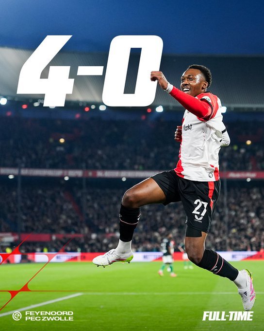 Τη νίκη με 4-0 πανηγύρισε η Φέγενορντ επί της Τσβόλε και επέστρεψε στην 3η θέση. Παρέμειναν στο +7 από τα μπαράζ παραμονής οι φιλοξενούμενοι.