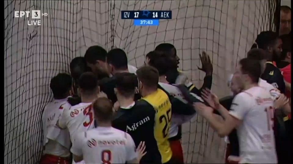 Σύρραξη υπήρξε στο Ίζβιντατς - ΑΕΚ με τους παικτες των γηπεδούχων να την πέφτουν όλοι μαζί στον Σακό. Αποτελεσμα ηταν οι διαιτητές να αποβάλουν τον Τσέσκο που ξεκινησε τη σύρραξη .