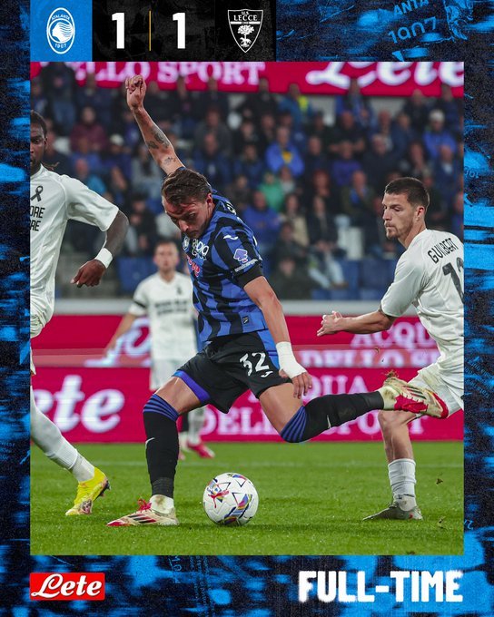 Στο Μπέργκαμο, Αταλάντα και Λέτσε, έμειναν στο 1-1 πετυχαίνοντας από ένα γκολ σε κάθε ημίχρονο, από το σημείο του πέναλτι. Έχασε ευκαιρία να πάρει νίκη που θα της δώσει αέρα στη μάχη της παραμονής η Λέτσε.