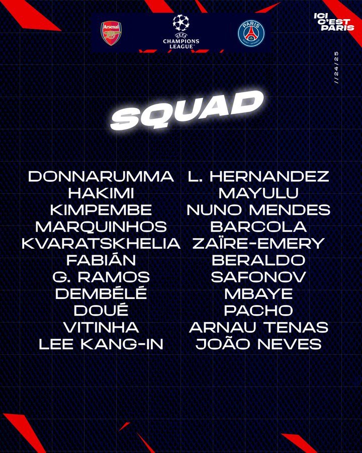 Αυτή θα είναι η δεύτερη επίσκεψη των Παριζιάνων στο Emirates φέτος, καθώς στις 2 Οκτωβρίου, για την League Phase, οι «κανονιέρηδες» είχαν επικρατήσει 2-0 με γκολ των Κάι Χάβερτς (20') και Μπουκάγιο Σάκα (35').